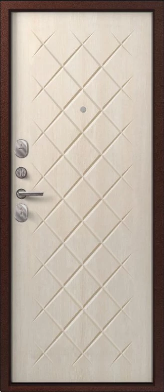 Надежная входная Дверь V-02 медь антик - седой дуб премиум класса по цене 36 357 руб. Большая толщина стали защитит от проникновения в ваш дом, квартиру или коттедж. Используется очень качественная фурнитура: замки, цилиндры, ручки, защелки. Покрытие и отделка двери изготовлено под внимательным контролем производителя. Дверь имеет долгий срок службы и гарантию.