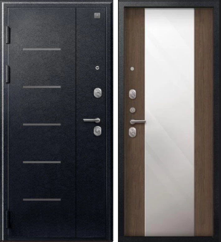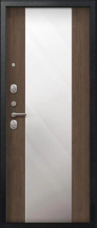 Надежная входная Дверь V-04 Черный муар - Миндаль Зеркало премиум класса по цене 42 107 руб. Большая толщина стали защитит от проникновения в ваш дом, квартиру или коттедж. Используется очень качественная фурнитура: замки, цилиндры, ручки, защелки. Покрытие и отделка двери изготовлено под внимательным контролем производителя. Дверь имеет долгий срок службы и гарантию.